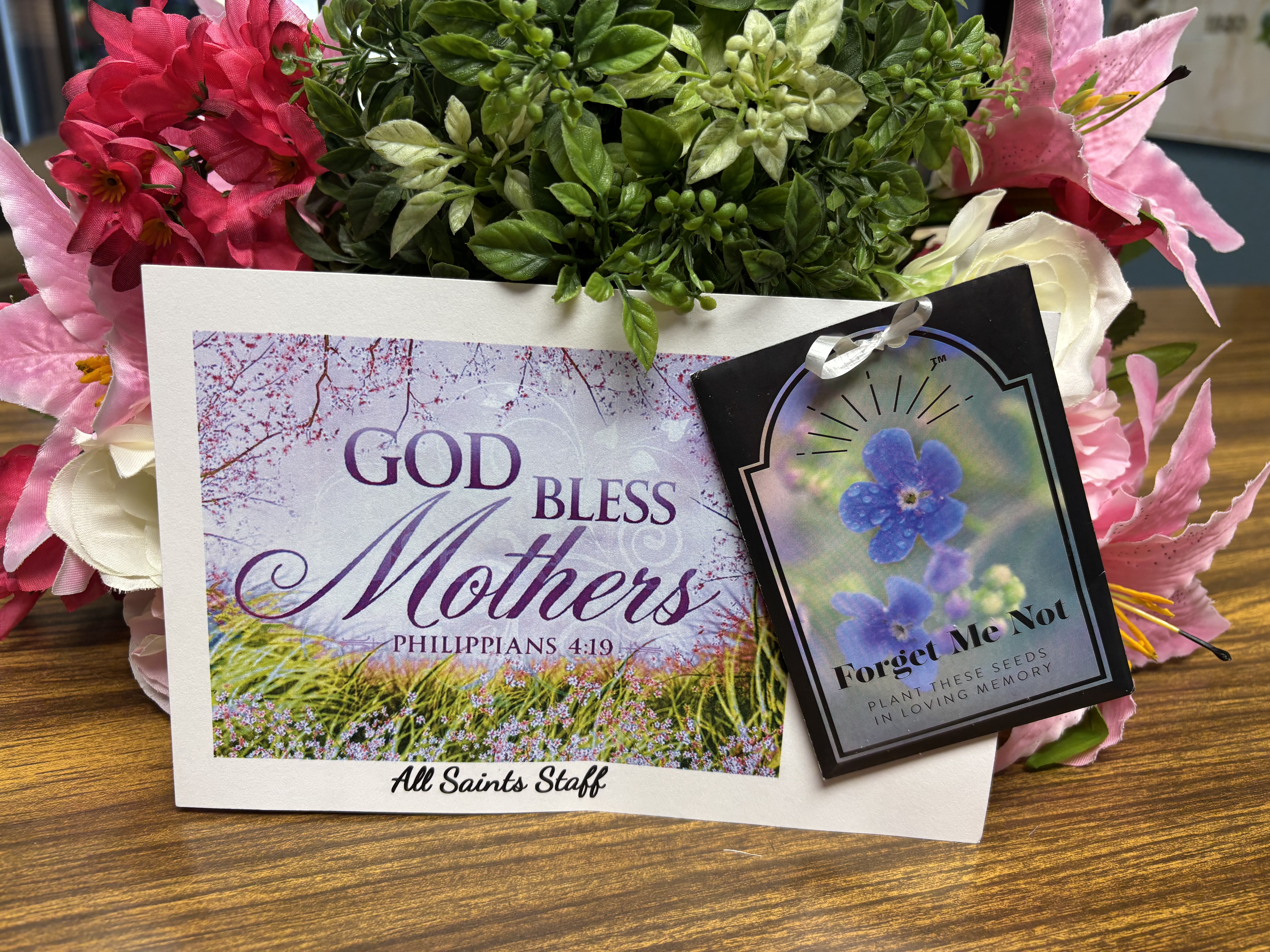 Sunday, May 10, 2026 is Mother’s Day. Celebrated annually on the second Sunday of May, this day honors mothers and maternal figures for all they have provided to us throughout their lives. We also honor Mary, the Blessed Mother of Jesus on this day. Visit All Saints Cemetery on Mother’s Day and pick up your Mother’s Day Remembrance Card and Forget-Me-Not seed packet. (Quantities are limited)